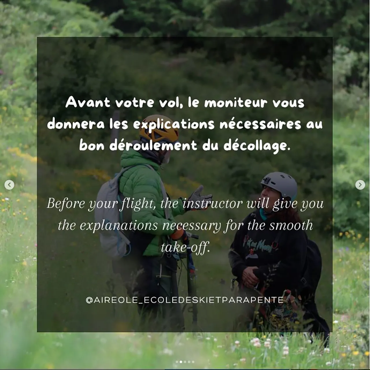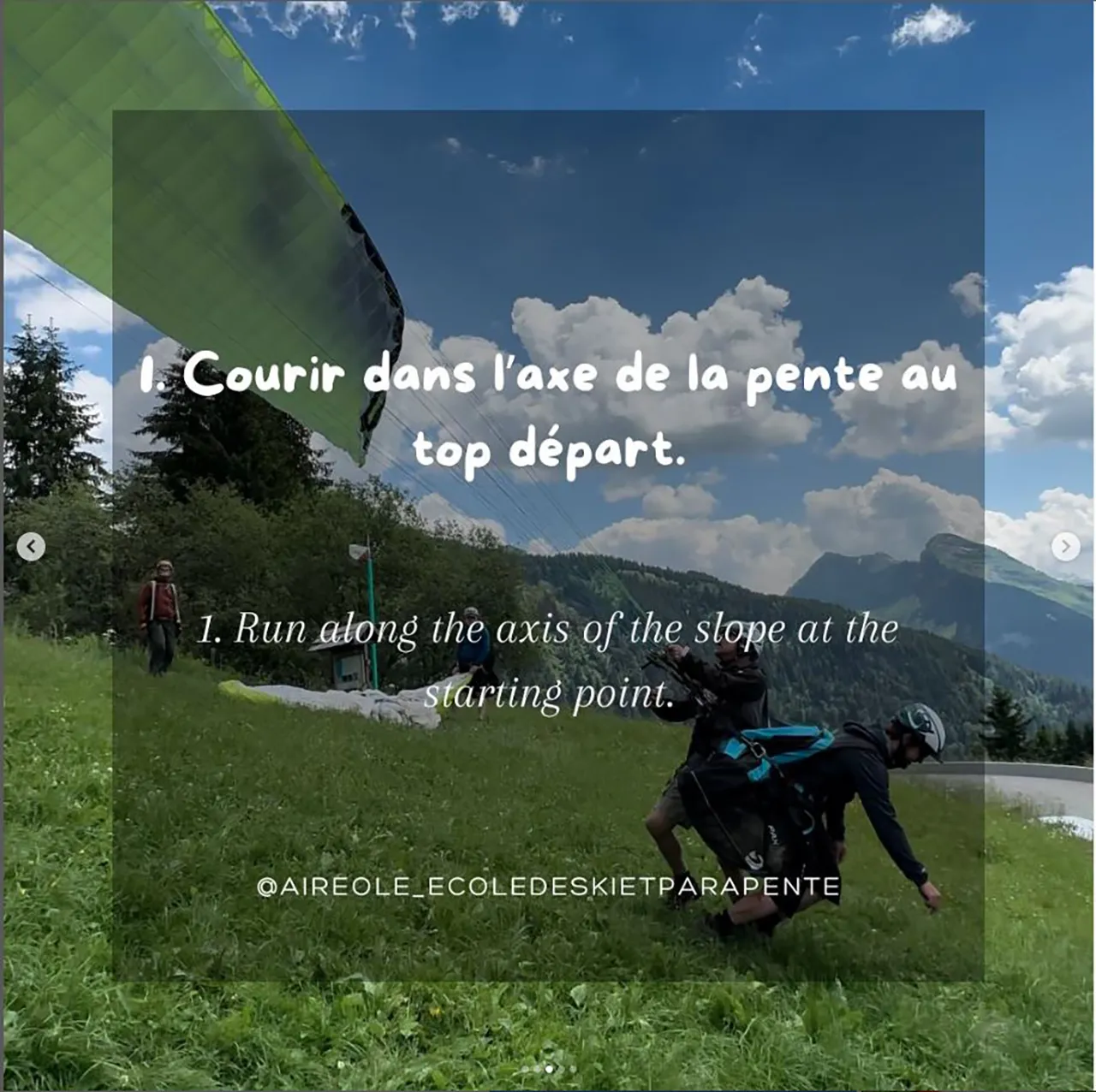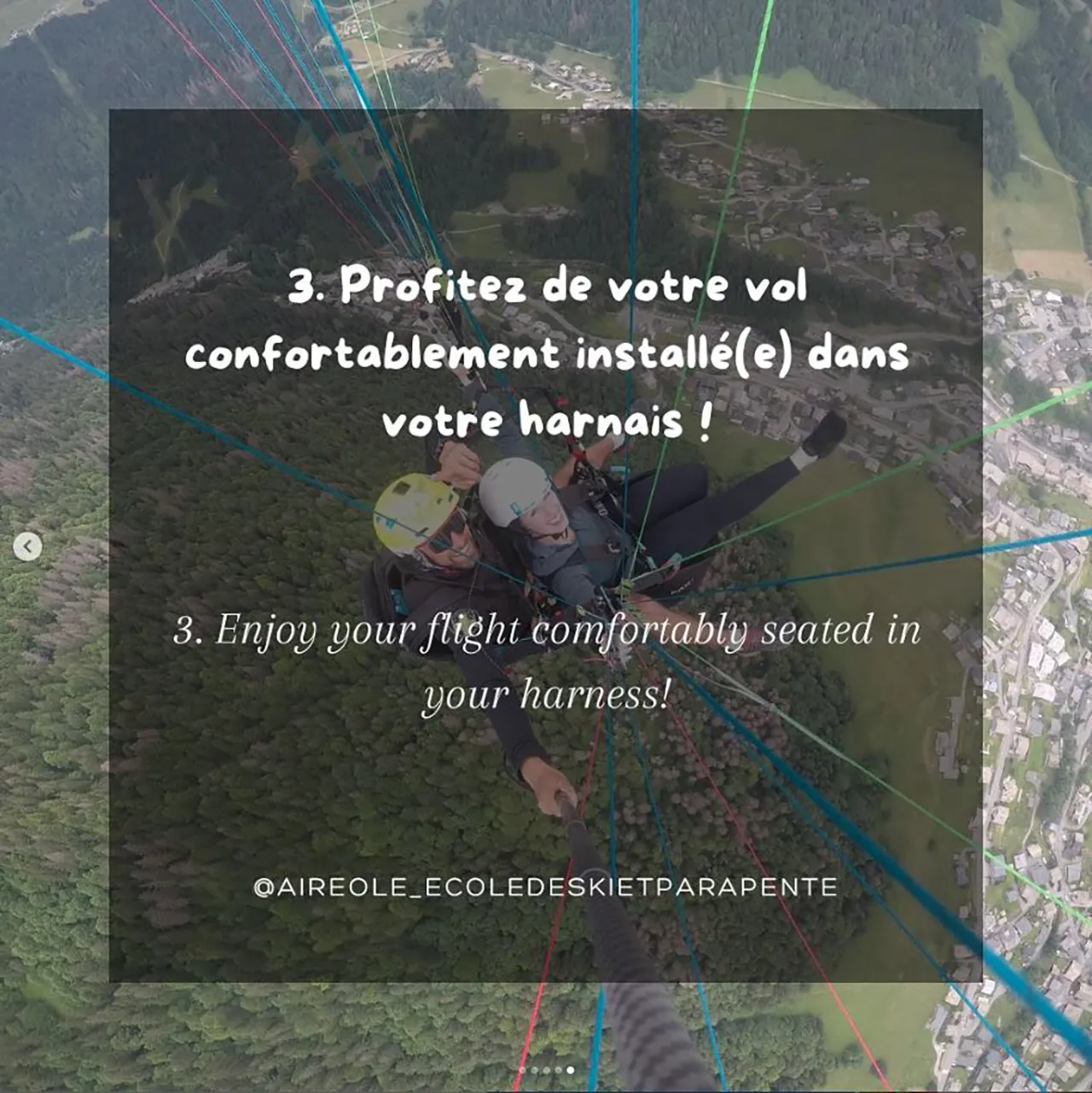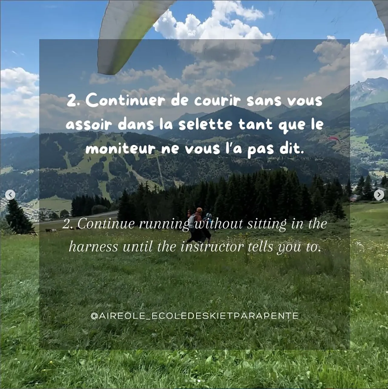 Cela vous fait rire que nous précisions qu’il faut courir dans le sens de la pente? Si vous saviez! Nous avons déjà vu des passagers changer de trajectoire se mettre à courir en remontant la pente alors qu’ils sentaient la voile les faire légèrement reculer au moment du gonflage 😂